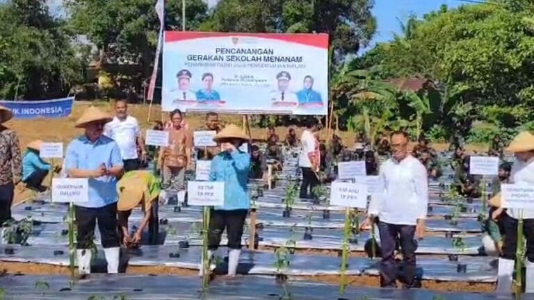 AMBON, LaskarMaluku.com – Sebagai bentuk penanganan inflasi di Provinsi Maluku, Gubernur Maluku Hendrik Lewerissa mencanangkan Gerakan Sekolah Menanam, di SMK Negeri Pertanian Pembangunan Passo, pada Jumat (2/5/2025).