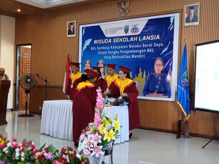 TIAKUR, LaskarMaluku.com – Sebanyak Dua puluh lansia di Kabupaten Maluku Barat Daya (MBD) diwisuda setelah mengikuti program Sekolah Lansia Kamboja selama setahun. Wisuda yang digelar di Aula Penginapan Tiakur Beach, Jumat sore (3/10/2025), menandai tonggak baru pelayanan pendidikan nonformal bagi warga lanjut usia di wilayah bertajuk Kalwedo di Provinsi Maluku ini.