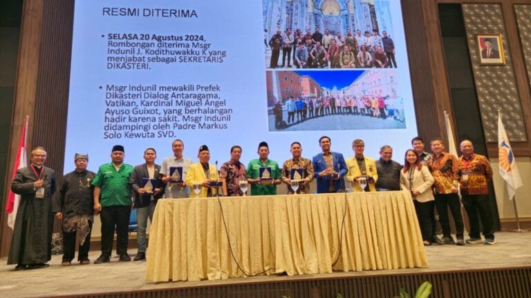Dukungan diwujudkan dalam bentuk Anugerah Apresiasi “Sehati Seperjalanan” kepada tujuh Ketum Ormas Pemuda Lintas Agama tersebut pada hari pertama Rapat Pleno Nasional Kom HAK KWI di Kantor KWI Jakarta, Selasa (25/2/2025). Rapat Pleno yang berlangsung 25 hingga 27 Februari 2025 dihadiri oleh 13 Pengurus Inti dan Para Utusan dari 38 Keuskupan Se-Indonesia plus 1 wakil Keuskupan TNI-Polri.