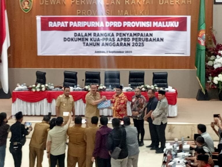 AMBON, LaskarMaluku.com – Pemerintah Provinsi (Pemprov) Maluku akhirnya menyerahkan dokumen Kebijakan Umum Anggaran (KUA) dan Prioritas Plafon Anggaran Sementara (PPAS) Anggaran Pendapatan & Belanja Daerah Perubahan (APBD-P) Tahun Anggaran (TA) 2025 ke DPRD Maluku.