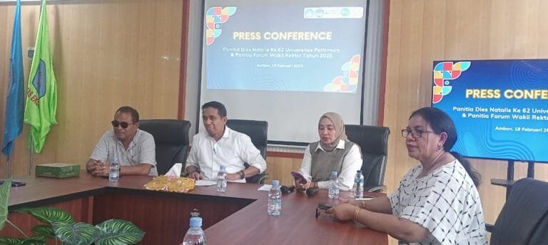 Pada acara Press Conference, Panitia Dies Natalis ke-62 Universitas Pattimura dan Panitia Forum Wakil Rektor Tahun 2025 itu, menghadirkan Ketua Panitia Diesnatalis, Ibu Raudha Arif Hanoeboen, SE,.M.E dan Ketua Warek Bidang Kerja Dr Agus Ufie, M.Pd dan Sekretaris Panitia Dr Anderson Picaully dan Dekan Fakultas Ekonomi dan Bisnis, Prof Dr, Teddy Christian Leasiswal, M.Si serta ketua Seksi Acara Dies Natalis ke-62