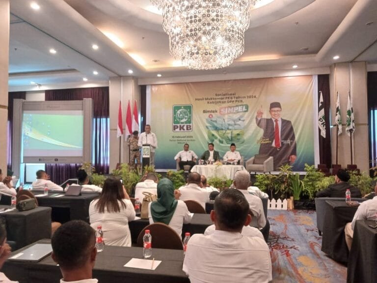 AMBON, LaskarMaluku.com – Dewan Pimpinan Wilayah (DPW) Partai Kebangkitan Bangsa (PKB) Provinsi Maluku, menggelar sosialisasi hasil Muktamar PKB Tahun 2024 serta Bimbingan Teknis (Bimtek) dan Simpel dan SMS PKB di Swiss-Belhotel Hotel, Kelurahan Uritetu, Kota Ambon pada Sabtu 15 Februari 2025.