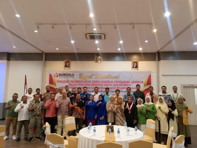 AMBON, LaskarMaluku.com – Badan Pengawasan Pemilihan Provinsi Maluku(Bawaslu) menggelar Rapat Koordinasi Evaluasi Pembentukan Serta Kinerja Pengawasan Adhock dalam Pemilihan Serentak tahun 2024 bersamaan partai politik, OKP, BEM, dan Media Massa di Maluku