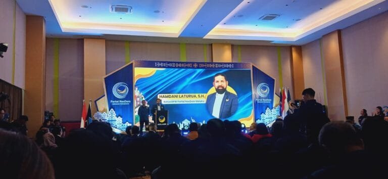AMBON,LaskarMaluku.com-Dengan semangat persatuan dan komitmen restorasi, Hamdani Laturua resmi dilantik sebagai Ketua DPW Partai NasDem Maluku untuk periode 2025-2029. Acara pelantikan yang meriah ini diselenggarakan bersamaan dengan Rapat Kerja Wilayah (Rakerwil) I NasDem Maluku, bertempat di Zest Hotel, Ambon, pada Rabu (5/11/2025).