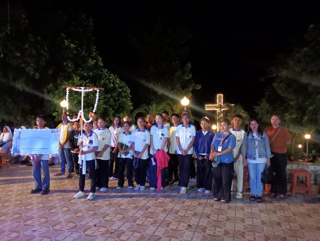 Mereka menempuh perjalanan kami mendekati hampir sembilan (9) kilo meter berdoa dan bernyanyi Kidung Pujian Bunda Santa Perawan Maria. Dan mengawali start dari Paroki Santa Maria Bintang Laut (MBL) hingga finish di tempat Wisata Rohani Goa Maria Air Louw, Kecamatan Nusaniwe Kota Ambon. Lokasi wisata rohani ini, berada diatas lahan empat (4) hektare milik keuskupan Amboina.