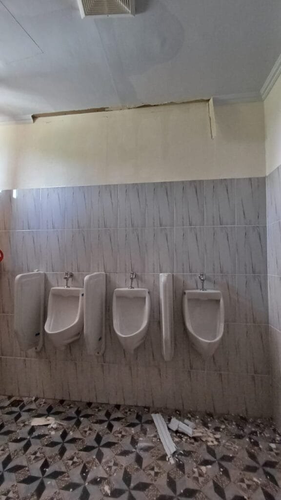 Hasil pantauan media ini, di dalam gedung terbukti benar kalau banyak kebocoran di hampir semua instalasi air, dan di aula gedung belajar para seminar.
