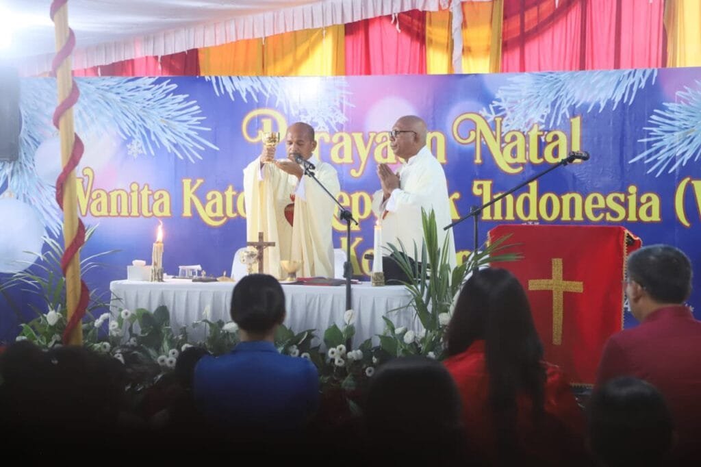Perayaan Natal WKRI Cabang se-Kota Ambon, diawali dengan perayaan ekaristi yang dipimpin Vikaris Episkopal Kevikepan Kota Ambon RD Man Oratmangun didampingi RP Carol Jamrevav dan dihadiri Walikota Ambon Bodewin Wattimena, Ketua TP PKK Kota Ambon Lisa Wattimena bersama badan pengurus. (L02)