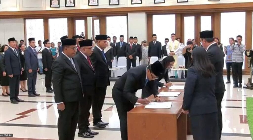 AMBON, LaskarMaluku.com – Setahun kepemimpin Gubernur Maluku Hendrik Lewerissa dan Wakil Gubernur Abdullah Vanath, Lewerissa secara resmi melantik melantik dan mengukuhkan 26 Pejabat Pimpinan Tinggi Pratama di lingkup Pemerintah Provinsi Maluku, Jumat (20/2/2026) di lantai 7 kantor Gubernur Maluku.