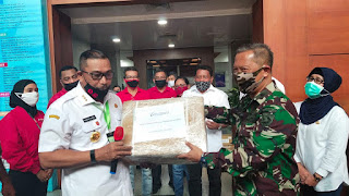 | Gubernur Maluku Murad Ismail saat menyerahkan ventilator kepada pihak Rumah Sakit Tentara, Rabu (03/06/2020) di Lobi Kantor Gubernr Maluku |