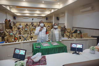 Penyerahan WTP untuk Kota Ambon dilakukan secara virtual, Senin (13/07/2020) oleh Kepala BPK Perwakilan Maluku Muhamad Abidin,SE,Ak, di aula lantai dua Balai Kota.