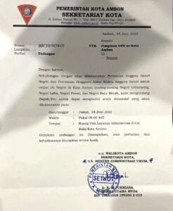 LASKAR – Rencana pelantikan Saniri dan Pengganti antar Waktu, Anggota Saniri 4 negeri di Kota Ambon, Jumat (24/6/2022) di ruang unit layanan administrasi mengalami penuundaan Penundaan disebabkan Pj Walikota Ambon Bodewin Wattimena masih berada di luar daerah, padahal surat undangan pelantikan dengan nomor 005/70/SETKOT tertanggal 23 Juni 2022 sudah beredar Peresmian anggota Saniri dan Pengganti […]