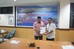 LASKAR – Pemerintah Kota (Pemkot) Ambon dan PT. Telkom Indonesia,Tbk Wilayah Telekomunikasi (Witel) Maluku melakukan pendandatanganan kontrak kerjasama untuk penyediaan Layanan Internet berupa Wi-fi Station dan Astinet.