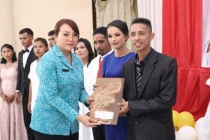 Tim Penggerak PKK Kota Ambon, bekerja sama dengan Pemerintah Kota Ambon, memfasilitasi 92 pasangan mengikuti pernikahan massal yang berlangsung di aula Xaverius Ambon, Kamis (7/12/2023).