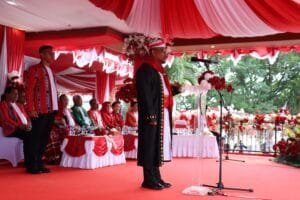 Gubernur Maluku Murad Ismail menjadi Inspektur Upacara (Irup) pada peringatan Hari Ulang Tahun (HUT) ke-77 Provinsi Maluku Tahun 2022, yang berlangsung di Lapangan Merdeka, Jumat (19/8/2022).