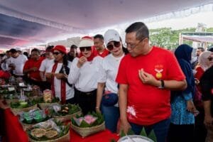 Pangdam XVI/Pattimura Mayjen TNI Ruruh A. Setyawibawa, S.E., M.M. didampingi Ketua Persit KCK Daerah XVI/Pattimura Ny. Indah Ruruh A. Setyawibawa menghadiri Pemecahan rekor MURI untuk makanan olahan terbanyak dari sagu yang merupakan salah satu rangkaian dalam memeriahkan HUT ke- 77 Provinsi Maluku, bertempat di Lapangan Merdeka Ambon, Sabtu (20/8/2022).