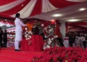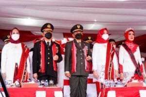 Pangdam XVI/ Pattimura, Mayjen TNI Ruruh A. Setyawibawa, S.E., M.M. mengikuti upacara peringatan HUT Kemerdekaan RI di Lapangan Merdeka Ambon, Rabu (17/08/2022).