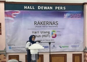 Ketua Dewan (DP) Pers Ninik Rahayu membuka secara resmi Rapat Kerja Nasional (Rakernas) Serikat Media Syber Indonesia (SMSI) di Hall Dewan Pers,
