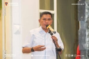 Gubernur Maluku Murad Ismail bersama Ditjen Bimas Kristen Kementerian Agama RI Jannus Pangaribuan, menekan sirine pada bola dunia yang menjadi simbol persidangan, sebagai tanda pembukaan Sidang Majelis Sinode AM Gereja Protestan Indonesia (GPI) Tahun 2022 di Gedung Gereja Maranatha, Minggu, (20/11/2022).