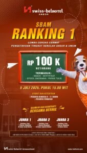 AMBON, LaskarMaluku.com – Swiss-Belhotel Ambon kembali menghadirkan event edukatif dan menyenangkan bagi anak-anak dengan menggelar SBAM Ranking 1, sebuah lomba cerdas cermat pengetahuan umum dan tingkat sekolah dasar yang akan dilaksanakan pada: Hari/Tanggal: Sabtu, 5 Juli 2025 Waktu: Pukul 15.00 WIT Tempat: Swiss-Belhotel Ambon Dengan mengusung konsep kompetisi interaktif, acara ini ditujukan bagi anak-anak usia […]