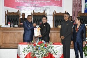 Wakil Bupati Maluku Barat Daya, Drs. Agustinus Lekwarday Kilikily, M.Si., menyampaikan Pidato Pengantar Laporan Keterangan Pertanggungjawaban (LKPJ) Tahun Anggaran 2024 dalam rapat paripurna istimewa yang digelar di Ruang Sidang Utama DPRD Kabupaten Maluku Barat Daya (MBD), Jumat (11/3/2025).