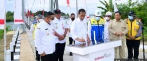 Presiden Joko Widodo didampingi Ibu Iriana Joko Widodo meresmikan Jembatan Gantung Wear Fair, dalam kunjungan kerjanya ke Kabupaten Maluku Tenggara, Provinsi Maluku, pada Rabu (14/9/2022).
