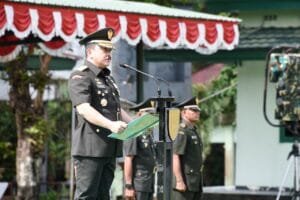 Pangdam XVI/ Pattimura, Mayjen TNI Ruruh A. Setyawibawa, S.E., M.M. menghadiri Vicon bersama Kepala Staf Angkatan Darat, Jenderal TNI Dudung Abdurachman di Ruang Vicon Puskodal Makodam, Senin (12/09/2022).