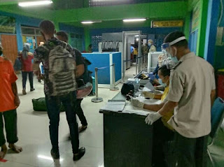 Sedikitnya sekitar 30-an orang eks Casis TNI AD dan para penumpang lainnya menjalani pemeriksaan secara ketat di Pos Gustu Kota Ambon, Pelabuhan Yos Soedarso, saat hendak naik ke KM Sabuk Nusantara 103.
