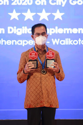 Dua penghargaan tersebut yakni Top Digital Implementation 2020 on City Government level bintang empat (4) dan Top Leader on Digital Implementation yang dianugerahkan kepada Walikota Ambon, Richard Louhenapessy.