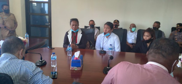 LASKAR – Bupati Kepulauan Tanimbar Petrus Fatlolon, SH,MH memberikan apresiasi kepada tiga srikandi Tanimbar yang melakukan aksi demo, Selasa (27/10/2020) dalam menyikapi sejumlah permasalahan dari kacamata tiga srikandi ini diantaranya kekurangan obat-obatan dan oksigen di RSUD P.P.Magretty, deposito uang daerah, penyaluran dana covid maupun perjalanan dinas kepada daerah.