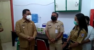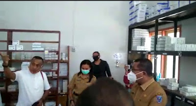 | Bupati Kepulauan Tanimbar Petrus Fatlolon, SH,MH saat melakukan kunjungan ke RSUD P.P.Magretty, Saumlaki, Senin (26/10/2020) terkait kekurangan beberapa jenis obat antibiotik dan bahan habis pakai. |